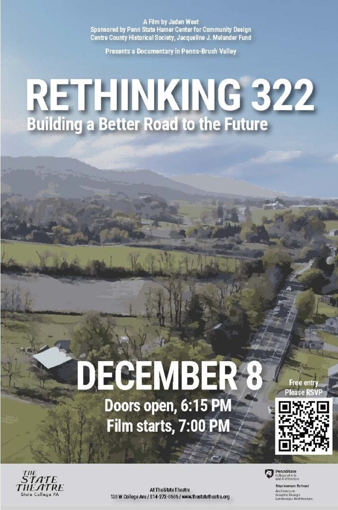 Rethinking 322 brings the future of the State College Connector to the historic State Theatre in a stunning new documentary film. Learn about the people and places that will be impacted by the SCAC. Hear from local residents who will lose their farms, and experts concerned about the freeway’s impacts on water quality. This film was produced by students in the Penn State Landscape Architecture program as part of their ongoing engagement with the residents of Penns-Brush Valley, Rethinking 322.